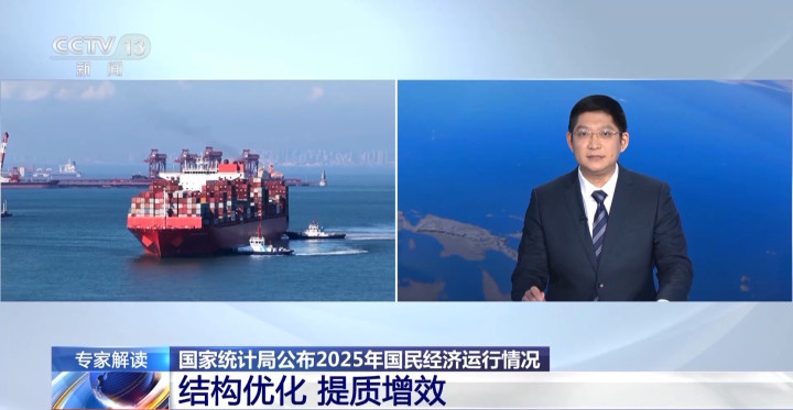 国家发展改革委国家信息中心研究员魏奇佳:我们看2025年整个经济运行数据反映出来的亮点,首先就是稳中有进、向新向好。这份成绩单的取得,比如说经济总量突破140万亿元大关,保持了5%的经济增长速度,充分彰显了我们超大规模经济体在发展过程当中的韧性和潜力。即便遇到风高浪急的挑战,但是外贸出口、国内产业转型升级调整的步伐都在坚定地向前迈进。