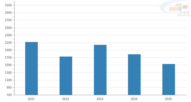 据中国水泥网水泥大数据显示,2025年,吉林省水泥产量是1535.51万吨(预测值)。最近五年吉林省水泥产量分别为:2021年2125.29万吨,2022年1731.44金牛股万吨,2023年2043.04万吨,2024年1792.84万吨,2025年1535.51万吨。